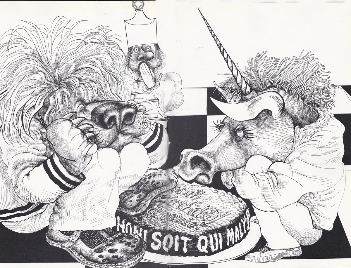 Continuing on from THIS introduction, here’s another case of Steadman taking Tenniel’s art to the cleaners, so to speak. We have some rather exquisite line-work, combined with the usual touches of vulgarity and madness, altho rather subtley done this time. The white king’s face gives it away, though.