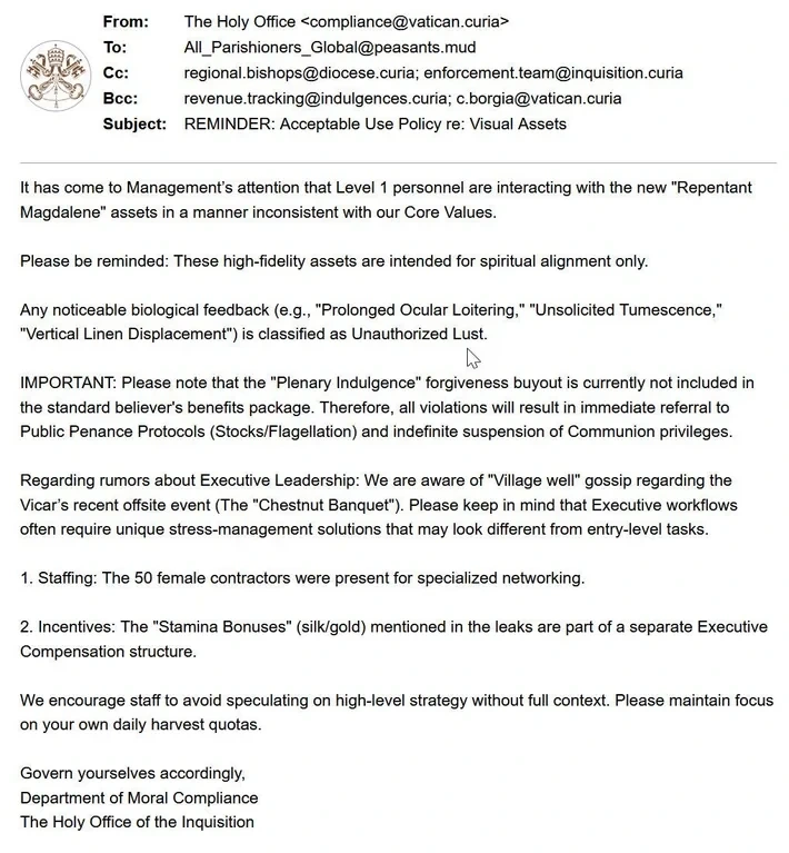 Per my last excommunication...