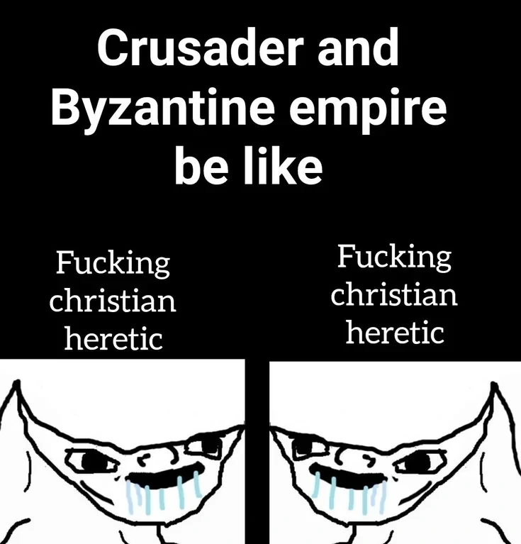 BLOODY HERETICS! (ignore the Muslims knocking on the door)