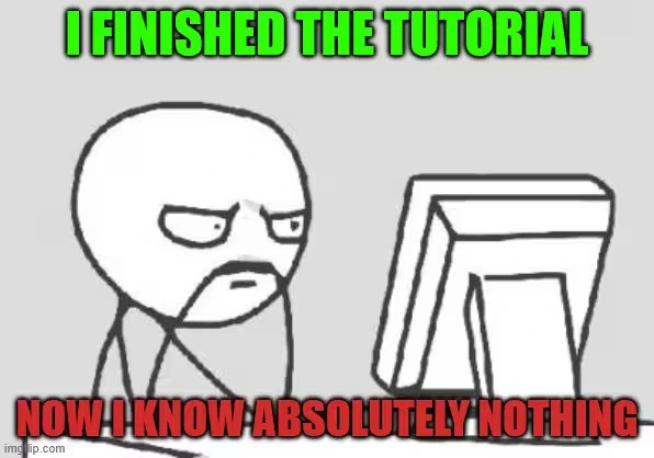 You ever just watch a YouTube guide but dont really learn anything or dont know where to go afterwards? well i made a meme about it if you have felt this way.